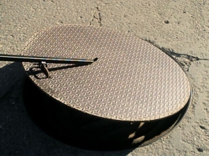 This is an underground tank manhole cover lifter for underground storage tanks. Furthermore, this underground tank manhole cover lifter is used to remove manhole covers from sump wells above underground petroleum tanks. In addition, it comes with a “J” attachment to remove manhole covers with missing handles. The manhole lifter extends to 5 feet in use and folds to 3 feet for storage. It weighs 7 lbs. The “J” hook attaches to the manhole lifter and fits into the manhole cover that is missing its handle. This manhole cover lifter is a safety tool for people working with underground storage tanks. The tool prevents the user from coming in contact with with the manhole cover reducing the risk of injury.
